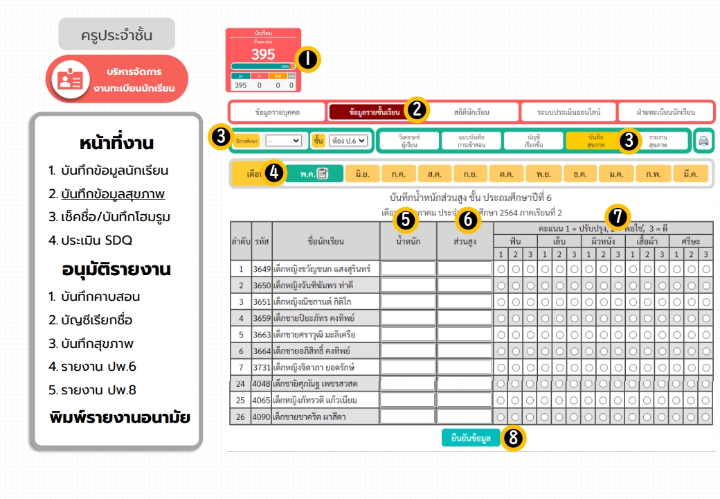 บันทึกสุขภาพนักเรียน(น้ำหนักส่วนสูง)