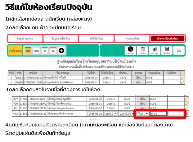 ◾ บันทึกแก้ไขข้อมูลนักเรียน